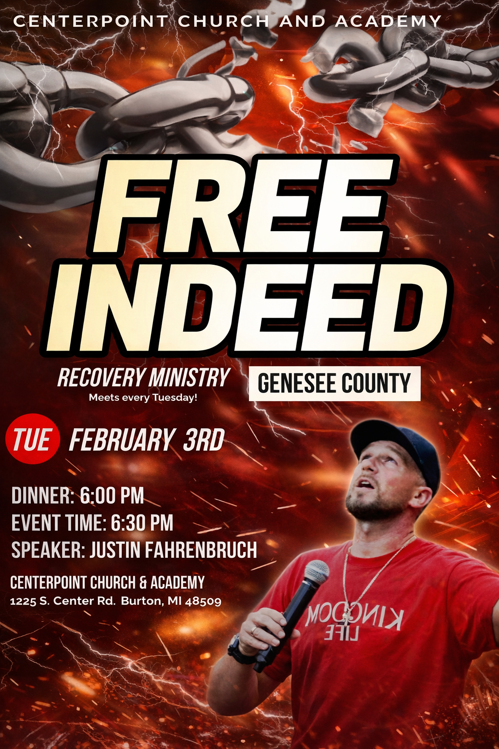 “Free Indeed” Recovery Meeting | Guest Speaker: Justin Fahrenbruch | Genesee County, Michigan
