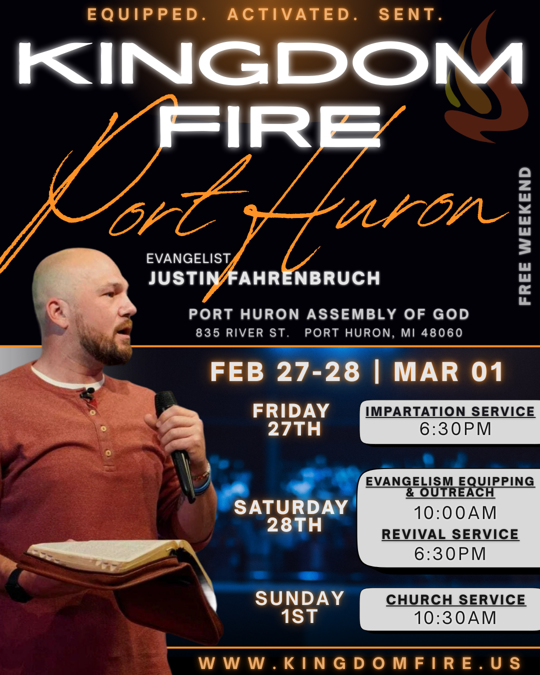 If you’re in Port Huron Area and don’t have a home church—or it’s been a while since you’ve been in church—we would love to invite you to join us at Port Huron Assembly of God - Sunday, March 1st! |