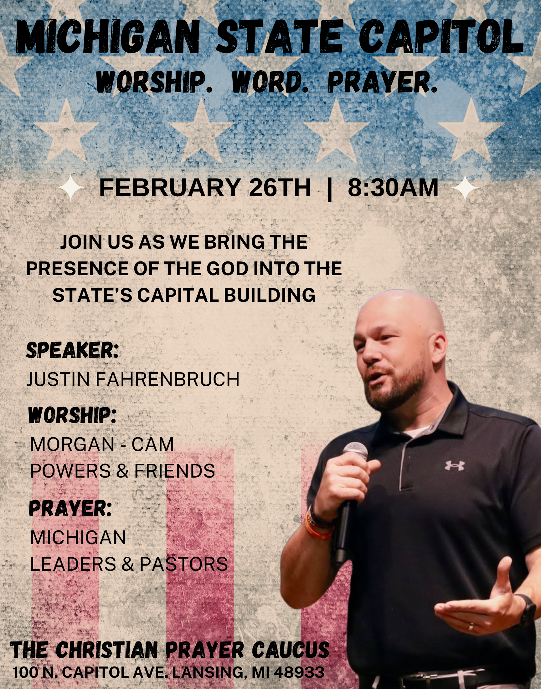 You are invited to join us for a powerful morning gathering at the Michigan State Capitol, focused on releasing God’s blessing, wisdom, and righteousness into the highest places of authority in our state.